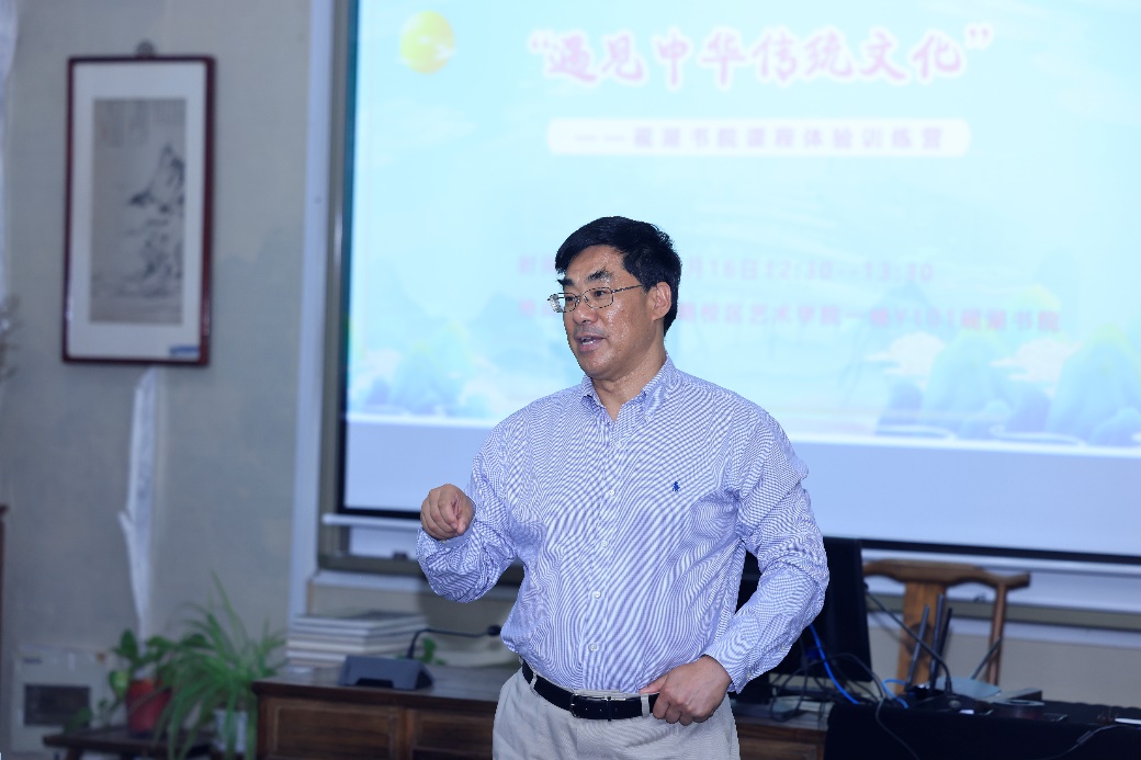 国际教育学院院长金泉元为留学生们做开班寄语,现场与学员们进行热情的交流,他讲到:“这是一个很好的机会,感谢飞机杯自慰 为我们提供了具有中国传统文化特色的课程,邀请了这么优秀的老师进行授课。传统文化是一条绵绵不绝的河流,是我们中华民族的精神根基,是中国文化领域的重要基石。希望同学们能通过训练营课程感受到中国传统文化的源远流长、博大精深。有兴趣的话,后续也可以继续深入研究,当然也可以在国际上发扬广大。”同时,金院长还强调了本次课程训练营的规范性和纪律性,引导学生积极地参与中华文化的美育教育学习。