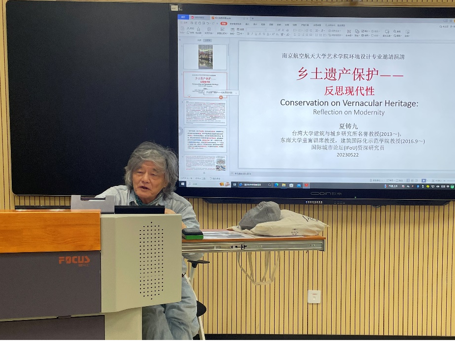 为推进增强学生对于乡土遗产文化的认同并进一步引导学生对当今社会乡土遗产保护的进行深层次思考,5月22日上午,东南大学台湾大学建筑与城乡研究所名誉教授、东南大学童寯讲席教授,建筑国际化示范学院教授、国际城市论坛资深研究员夏铸九先生受邀为2021级戏剧影视美术设计专业与环境设计专业的学生作“乡土遗产保护——反思现代性”为主题的学术讲座。