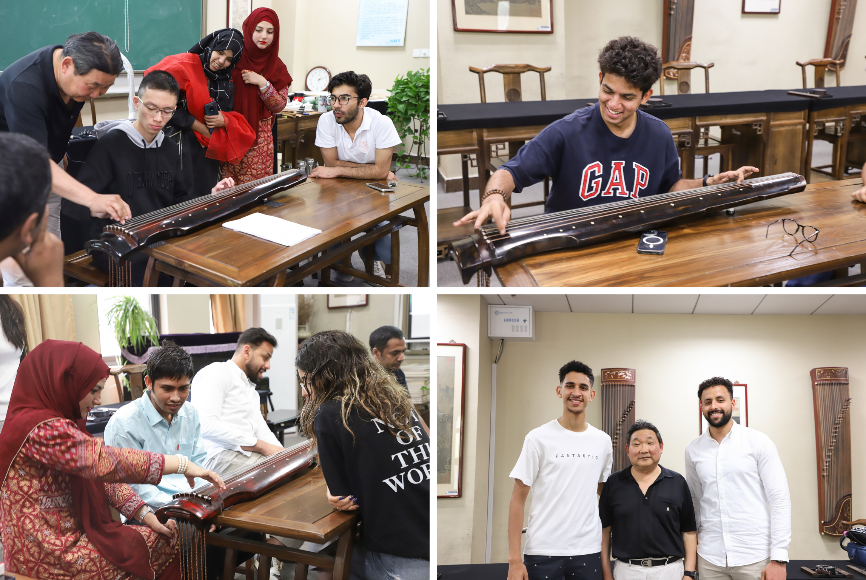 “我是来自比基斯坦的Muhammad sarmad malik,中文名是马德。今天的古琴弹唱课真是一次迷人的经历。当我拿着乐器,小心翼翼地拨动琴弦时,我立刻感到与中国丰富的文化遗产产生了联系。古琴奏出的旋律将我带入了一种宁静和自省的境界。我不仅学到了演奏这种古老乐器的技术方法,还学到了通过音乐捕捉情感本质的重要性。