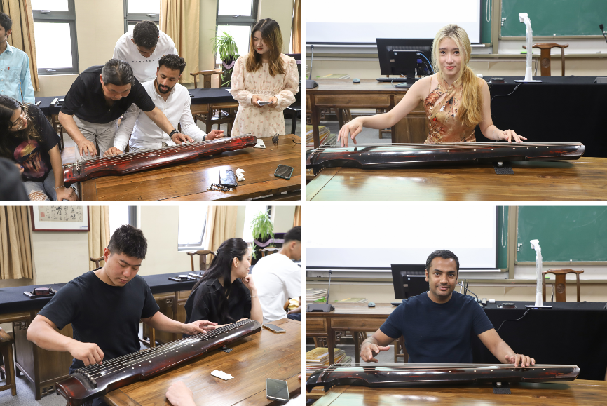 本次古琴课由卞昌荣老师进行授课。在课程的开始,卞老师表示,古琴以其独特的艺术魅力、厚重的文史底蕴,诠释着中华民族传统文化的精髓。以此为契机,向留学生们展示并传授古琴弹奏技巧,有利于传承弘扬非遗文化,激活中国传统文化。