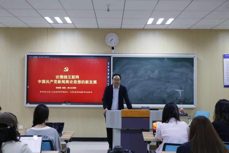 2023年11月2日,南京林业大学人文社会科学学院院长陈相雨教授受邀来我院开展学术讲座暨信仰公开课。讲座主题为“围绕互联网中国共产党新闻舆论思想的新发展”。讲座由新闻传播系主任蔡雁彬主持。