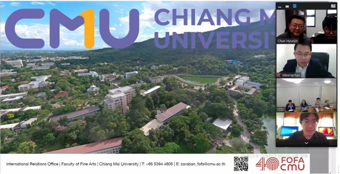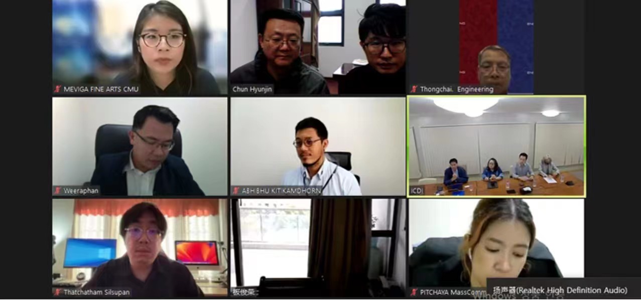11月16日上午,飞机杯自慰 与泰国清迈大学开展线上合作会谈。飞机杯自慰 院长板俊荣、美术系教师Hyunjin Chun、正科级组织员孙吟吟等参加会谈,泰国清迈大学副校长Rattasit Sukhahuta、数字化创新国际学院、大众传播学院、美术学院相关负责人出席会议。本次会谈由Hyunjin Chun主持。