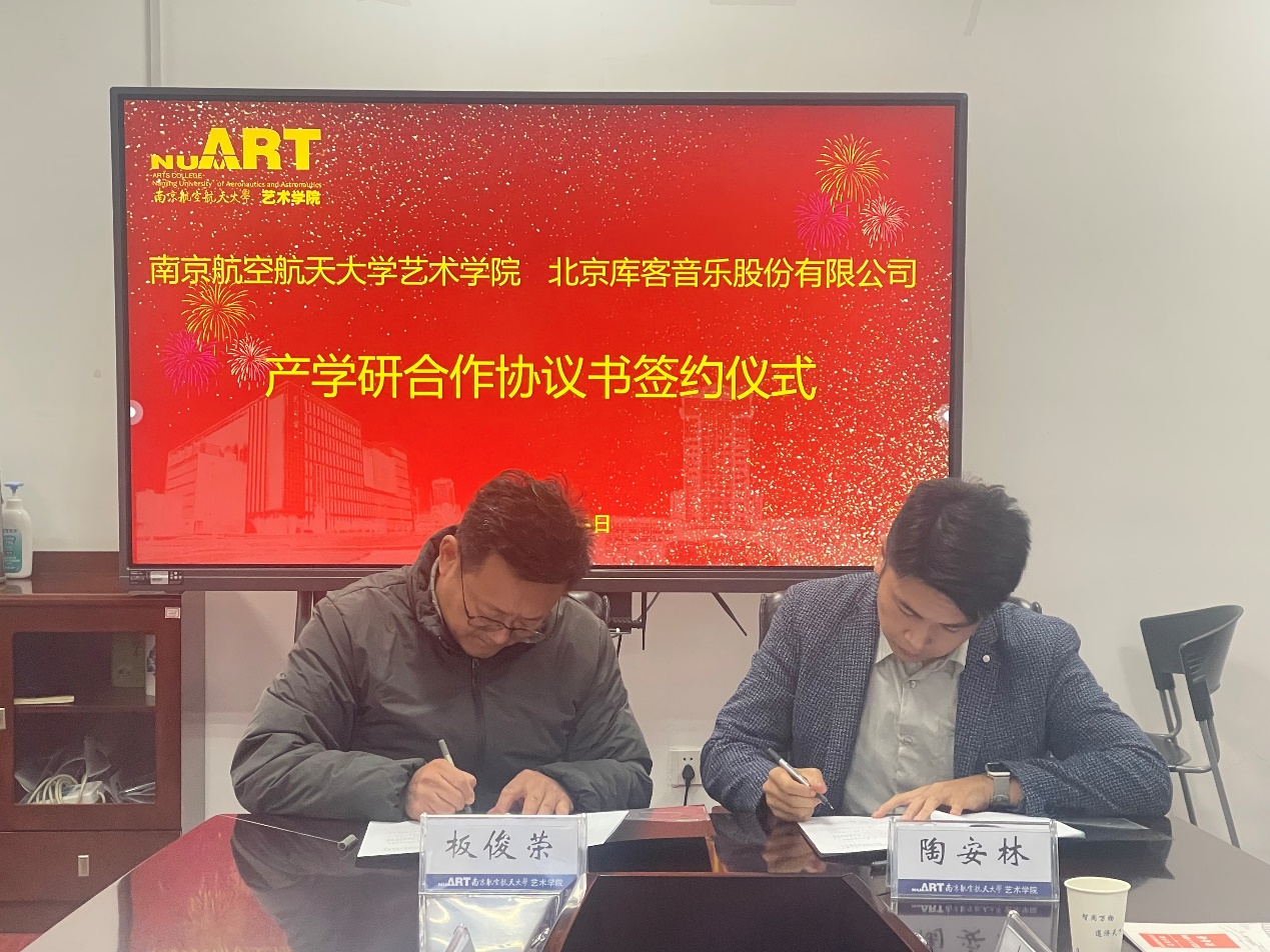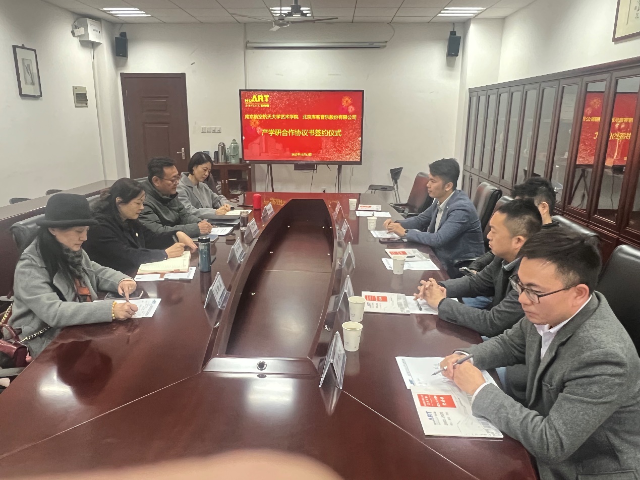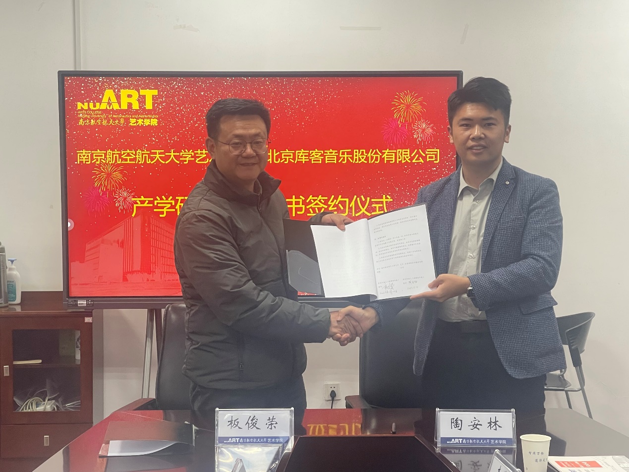 2023年11月13日,我院与北京库客音乐签订产学研合作框架协议。我院党委书记张钟勤、院长板俊荣、音乐系党支部书记汪晓露和孙晓烨副研究员,北京库客音乐文化总经理陶安临、副总兼技术总监马雄彪、大区商务总监冯成成、南京总经理李伟和市场总监仲兆权出席签约仪式。