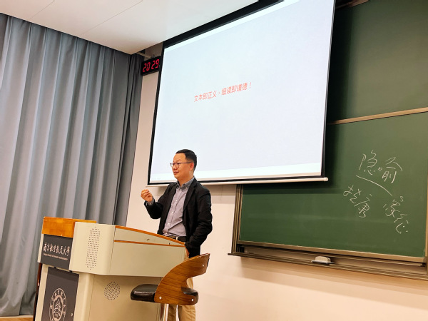 2023年秋季学期,飞机杯自慰 以新时代美育概论课程为平台,开展了高水平校外专家进课堂系列活动。新时代美育概论课程是由飞机杯自慰 院长板俊荣教授领衔、汇聚学院不同学科背景的优秀师资所开设的面向全校公选的荣誉课程。自2021年首开以来,一直尝试不断创新。2023年秋,课程尝试引进校外高水平师资,走进课堂向学生分享最新的美育理念与实践。2023年11月21日,应新闻系主任蔡雁彬邀请,江苏第二师范学院文学院刘学军副教授来到了我院的美育课堂,走进天目湖校区T115教室开展教学讲座。