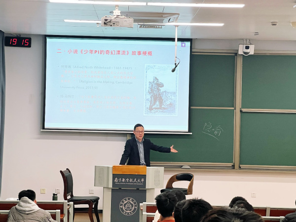 刘老师的讲座以“当代小说创作中的审美救赎理念——小说《少年Pi的奇幻漂流》及其叙事逻辑”为主题,以拉康的“镜像理论”为解读视角,为同学们分析了该部作品的审美密码,并揭示出了当代小说创作中所张扬的审美救赎理念。刘老师首先介绍了拉康其人,然后以拉康的“镜像理论”为依据,分析了小说《少年Pi的奇幻漂流》的“‘镜像’叙事与主体建构”以及“主体本质的追问与救赎”等问题。在讲座过程中,刘老师把晦涩难懂的理论深入浅出地结合具体案例来为同学们进行分析,引发了同学们的积极主动思考。