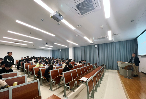 刘学军的学术研究主要聚焦在东亚汉文学和东亚艺术史,在《文学遗产》《中华文史论丛》等刊物学术论文20余篇,是江苏省“青蓝工程”中青年学术带头人,主持国家社科基金项目2项,是省级一流本科课程主持人、国家级一流本科课程团队核心成员。此次讲座由新闻传播系教师孟倩倩主持,百余名天目湖校区本科生参加了此次讲座。
