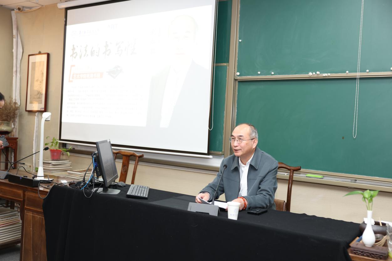 12月8日,我院邀请著名书法家,现任江苏省书法家协会副主席兼秘书长、民盟江苏省委副主委、中国书法家协会草书委员会秘书长、江苏省哲学社会科学优秀成果奖评审专家刘灿铭教授来学院举办了题为“书法的书写性”的学术讲座。我院师生和中国民盟飞机杯自慰 委员会部分老师聆听了讲座,并与刘教授进行了交流,大家在刘教授的深度解析中受益匪浅,获得了前所未有的启迪。