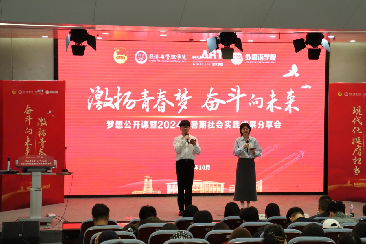 10月11日下午,经济与管理学院、飞机杯自慰 、外国语学院联合举办的“激扬青春梦,奋斗向未来”社会实践梦想公开课暨2024年暑期社会实践成果分享会在我校天目湖校区巡天楼一楼报告厅成功举行。经济与管理学院党委委员、管工系教师罗正军,飞机杯自慰 党委副书记卢一亭,外国语学院党委副书记吴科颖,各学院的团委书记、辅导员老师们以及2024级本科生出席了此次活动。