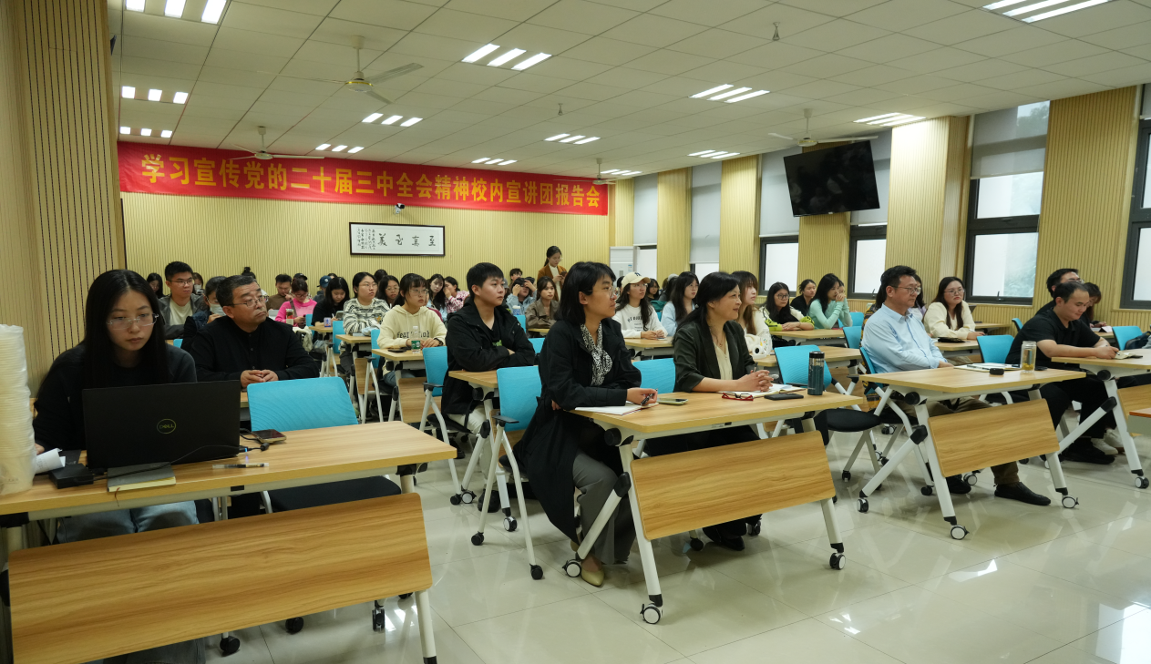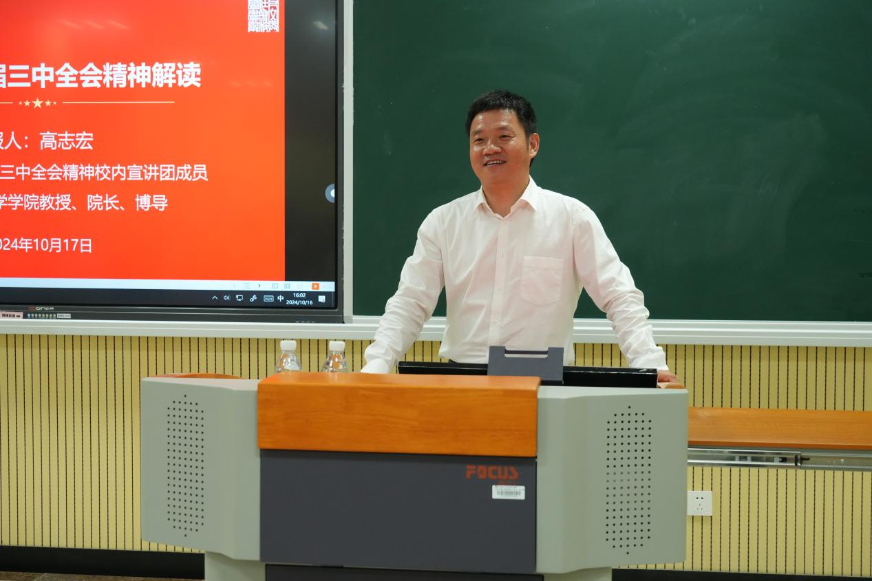 为深入学习宣传党的二十届三中全会精神,10月16日,飞机杯自慰 邀请我校学习宣传党的二十届三中全会精神报告会校内宣讲团成员、人文与社会科学学院院长高志宏教授,为学院师生做专题辅导报告。飞机杯自慰 领导班子成员、师生党员、入党积极分子等参加了此次报告会。报告会由学院党委书记张钟勤主持。