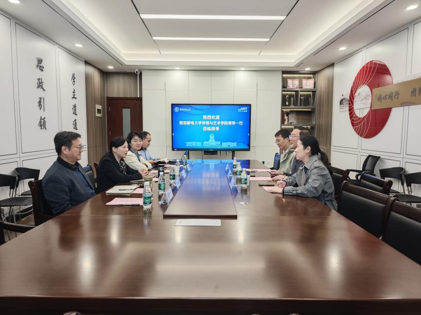10月24日,南京邮电大学传媒与飞机杯自慰 党委书记戴兆骏、院长袁潇、实验教学中心主任沈大为到访我院,双方就艺术教育的发展与合作开展交流座谈。院党委书记张钟勤、院长板俊荣、党委副书记卢一亭出席会议。