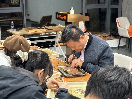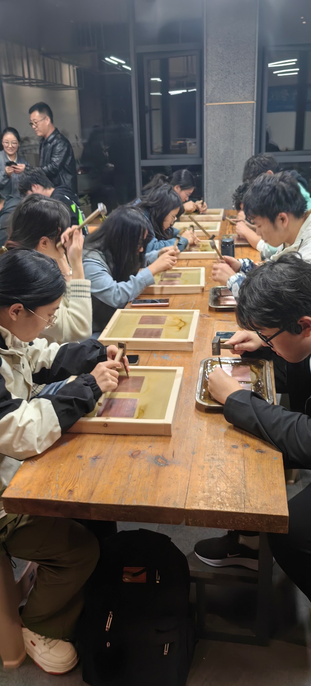 与水墨江南董事长交流时,他从黑框眼镜后微微一笑,“若是喜欢就去坚持,这门手艺是能够养活自己的。”这样的平静与自洽,也让我年轻浮躁的心有些沉静下来,不禁思考艺术的意义。无论是在展品间流连还是在工作室里敲打,艺术都从我的课本上逃脱了,它不再是一张张图片,或是一个个数字视频,而变成了实实在在可触摸的,近在咫尺的具像化身,不仅是更新奇的课堂体验,更有那样一种只知其义却未能够领会的审美经验被注入灵魂,在头脑中鲜活起来,即使离开仍然深深留下余香的美妙经验。