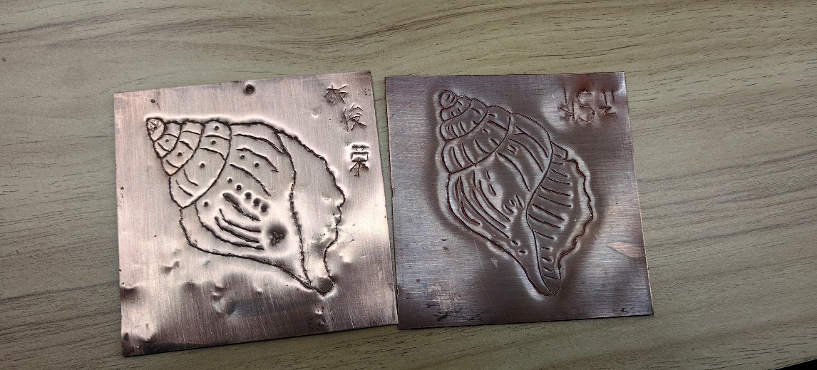 锤子拿在手中,我却发现事情远没有想象得那样简单,姿势、力度、角度个个不可或缺,其精巧与辛苦程度超出了我的想象,而这还仅仅只是摹边而已,我想起讲解员提到为一幅铜画从制作到上色需要几个月的光景,不禁在脑海里描摹着那些个日日夜夜,伴着晨光与夜色,在工作室细致敲打的孤独与艰辛,想必只有匠心能够更好地诠释这样的坚守,为了追求精美的艺术呈现而甘愿坐冷板凳的坚忍,不可抑制地生发出一种敬佩与感激之感。一个多小时的敲打后,我们都完成了自己的作品,下面这就秀给大家看,如果老师的作品不如我们的好,千万不要说出来,得给他留点面子不是。