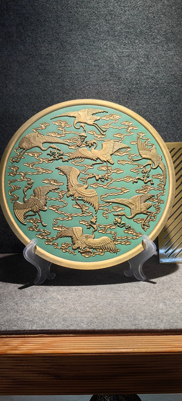 11月13日晚,我们下了大巴车后,从水墨江南基地大门前独具特色的庭院间小心翼翼地穿过后,学生们被分成两组,而我选择了先行欣赏,再进行实践的小组。刚踏入这栋外表朴素的大楼,我便发现处处是精心地设计与精致的铜艺作品呈现。一个铜艺基地,正如一篇优秀的学术论文,紧紧围绕其主题,以一个个详实的事例有力地论证其观点一样,以一件件优雅的艺术品,强烈地流泻着情感之美,技艺之美。