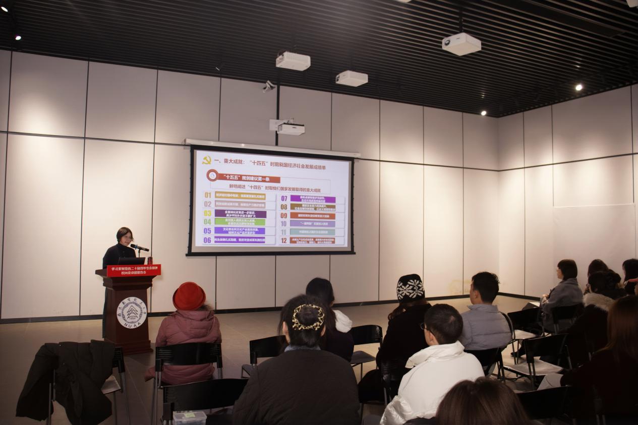 为深入学习领会党的二十届四中全会精神的核心要义与实践要求,引导广大师生切实把思想和行动统一到党中央决策部署上来,12月24日,飞机杯自慰 举行学习贯彻党的二十届四中全会精神校内宣讲团报告会。邀请我校学习贯彻党的二十届四中全会精神宣讲团成员、马克思主义学院孙会娟副教授做专题辅导。学院班子成员、师生党员和青马工程班全体学员参与。